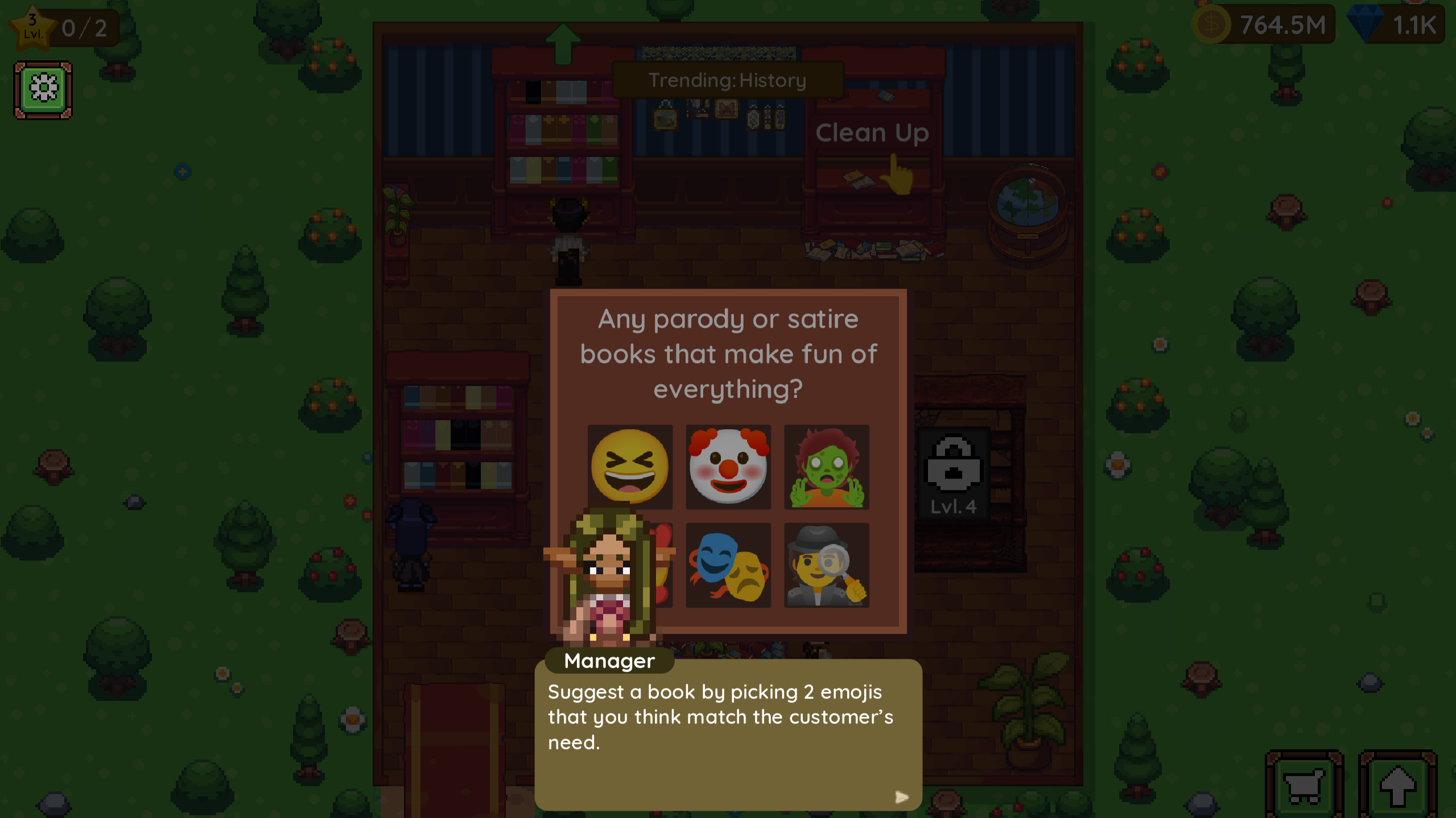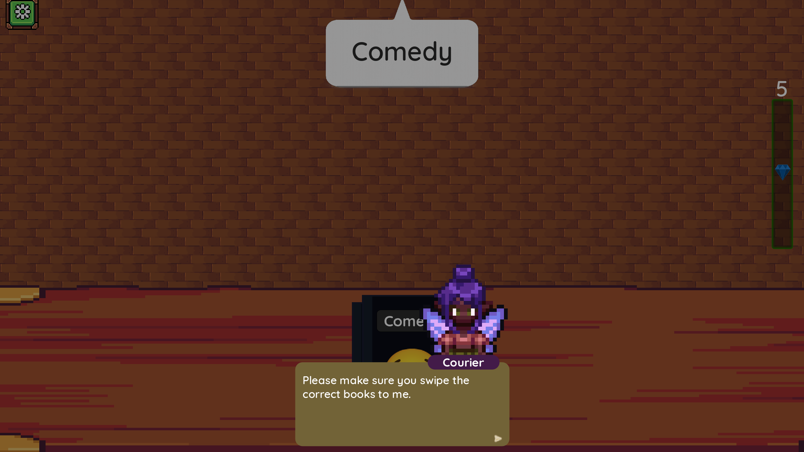 The swiping down on the book order minigame is kinda tricky to deal with on computer since the game goes full screen.