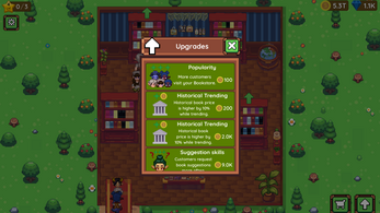 In this game you need to restore a bookstore. You buy bookshelves, choose book genres they will have, upgrade bookshelves and interact with the customers to help them decide what they want, make book deliveries, and deal with "unwanted" someone who might mess with your bookstore.
